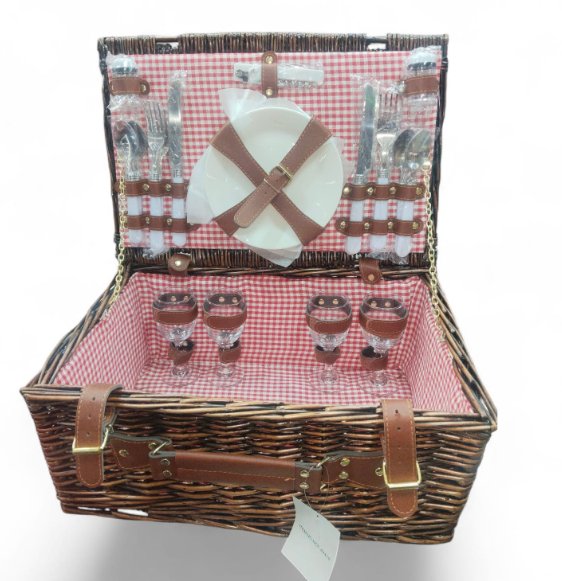 Canasta Picnic, Cuatro  puestos, copas, y accesorios